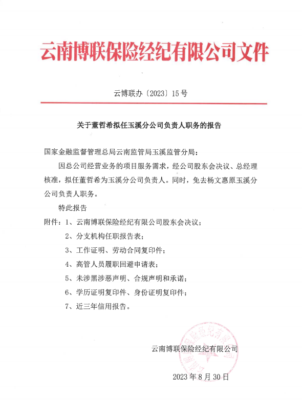云南博聯(lián)保險經(jīng)紀有限公司關(guān)于保